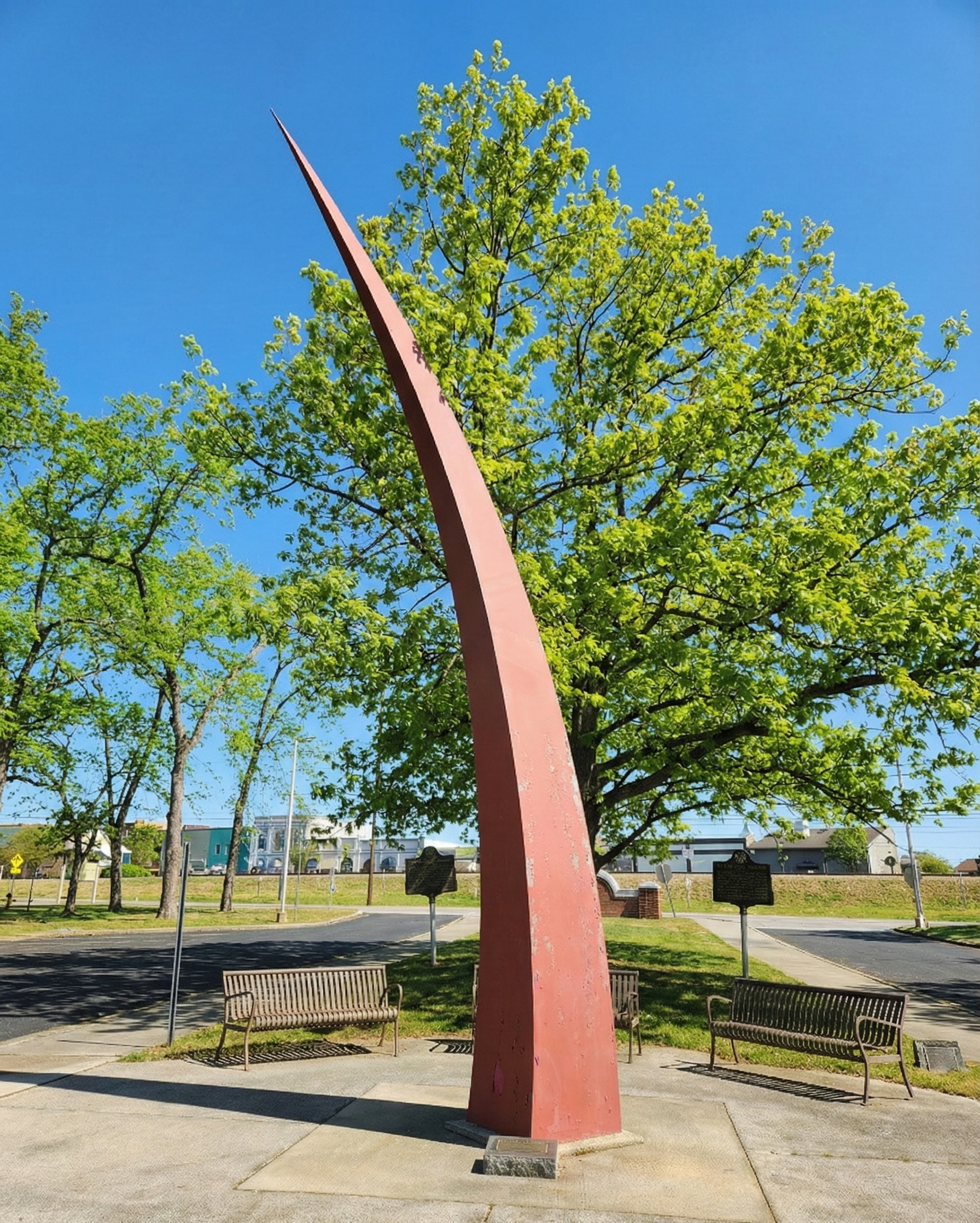 The Blade was a gift to the Nancy Guinn Memorial Library from the Conyers Civic League, the organization that founded the original library in 1919. The Blade, an abstract sculpture of painted steel and fiberglass, 30 inches square at the base and curving upward to a single point at a height of 25 feet, was dedicated at the site of the library’s (then) new building on February 27, 1972, “In honor of all members of the Conyers Civic League, past, present, and future.” It was moved in 1990 to the library’s current home on Green Street.